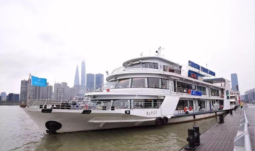 崇明线游览船为 “浦江游览2”轮,是2010年世博会指定用船,也是2018年黄浦江首批四星级游轮,载客量为450人。