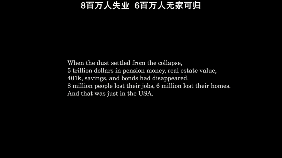 而2008年次贷危机时,800万人失业,600万人无家可归。