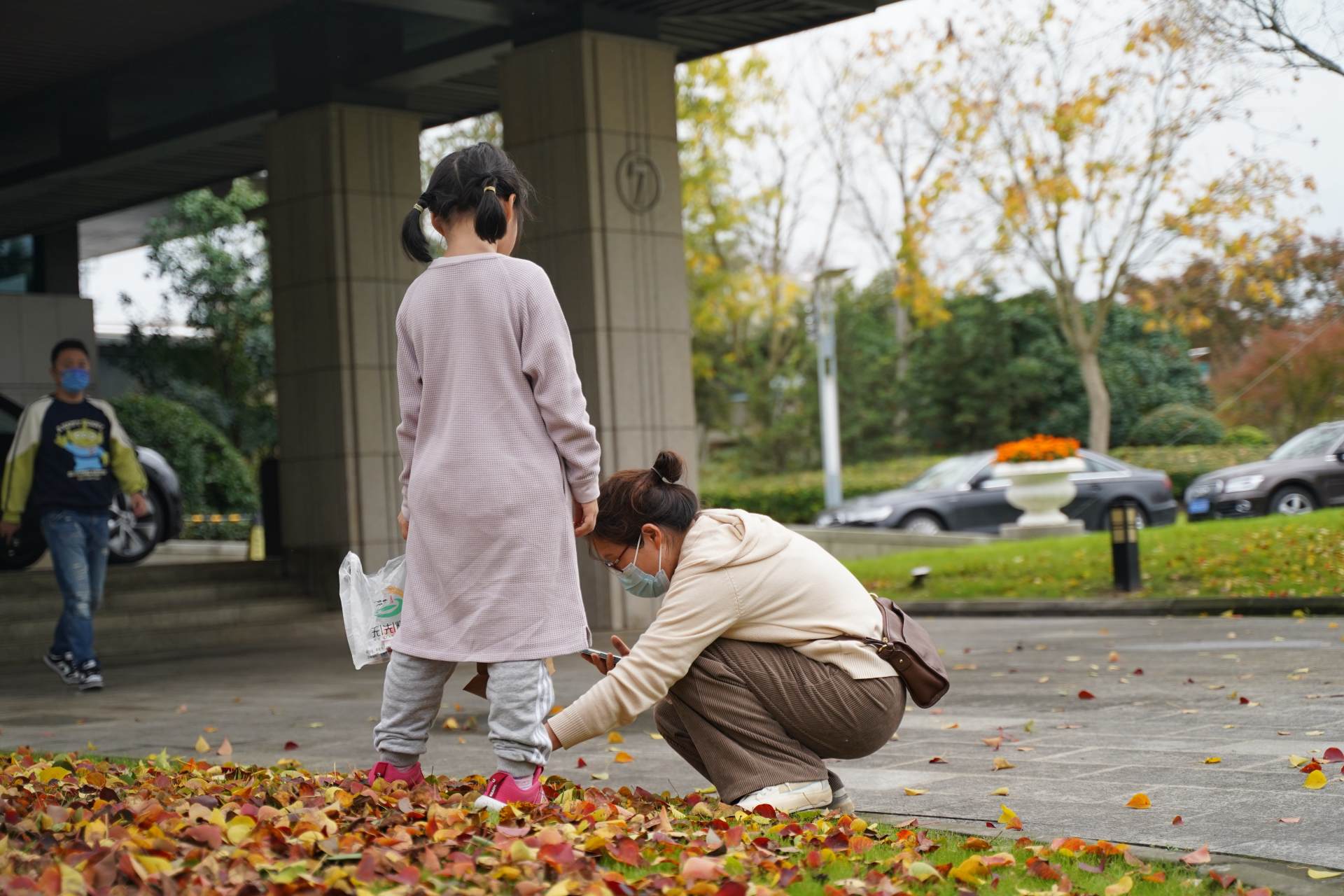小家伙对于园子里面的落叶是非常的感兴趣,和妈妈一起捡了很多落叶回家给爸爸做书签。难得的时光,一切都是他们的开心就好。