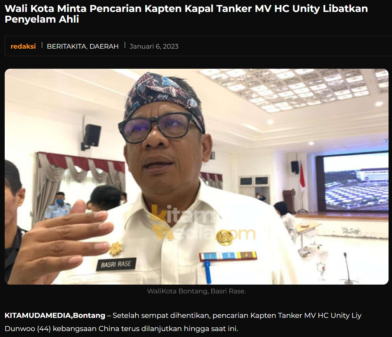 ↑印尼媒体关于李磊失踪一事的报道。印尼媒体官网截图