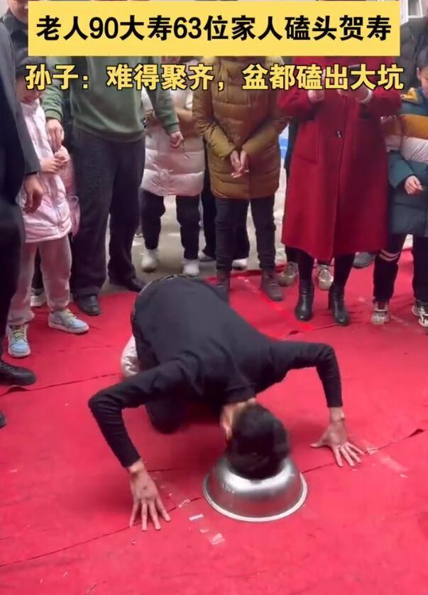 老人90大寿63位家人磕头贺寿(给老人祝寿磕头)